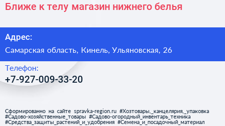 Ближе к телу, магазин нижнего белья по адресу Самарская область, Кинель, Ульяновская, 26 в дальнейшем Организация, размещена в следующих категориях:
