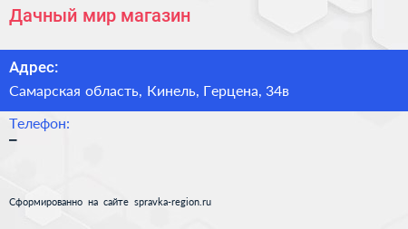 Дачный мир, магазин по адресу Самарская область, Кинель, Герцена, 34в в дальнейшем Организация, размещена в следующих категориях: