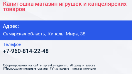 Капитошка, магазин игрушек и канцелярских товаров по адресу Самарская область, Кинель, Мира, 38 в дальнейшем Организация, размещена в следующих категориях:
