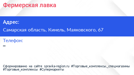 Фермерская лавка по адресу Самарская область, Кинель, Маяковского, 67 в дальнейшем Организация, размещена в следующих категориях: