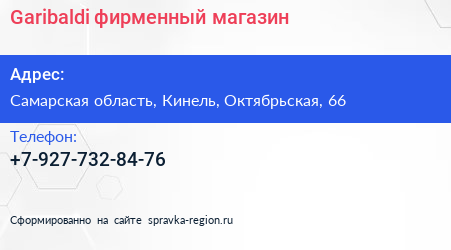 Garibaldi, фирменный магазин по адресу Самарская область, Кинель, Октябрьская, 66 в дальнейшем Организация, размещена в следующих категориях: