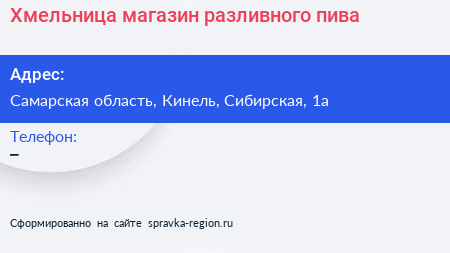 Хмельница, магазин разливного пива по адресу Самарская область, Кинель, Сибирская, 1а в дальнейшем Организация, размещена в следующих категориях: