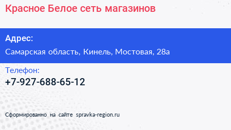 Красное & Белое, сеть магазинов по адресу Самарская область, Кинель, Мостовая, 28а в дальнейшем Организация, размещена в следующих категориях: