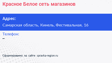 Красное & Белое, сеть магазинов по адресу Самарская область, Кинель, Фестивальная, 16 в дальнейшем Организация, размещена в следующих категориях: