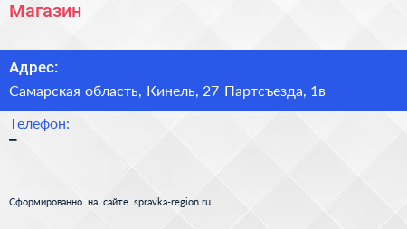 Магазин по адресу Самарская область, Кинель, 27 Партсъезда, 1в в дальнейшем Организация, размещена в следующих категориях: