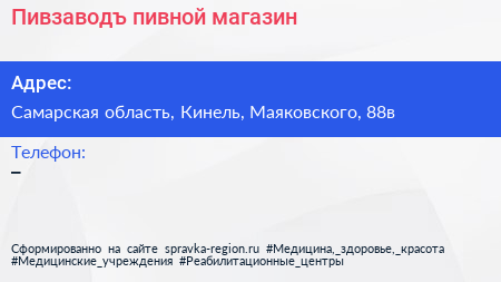 Пивзаводъ, пивной магазин по адресу Самарская область, Кинель, Маяковского, 88в в дальнейшем Организация, размещена в следующих категориях: