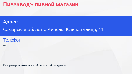 Пивзаводъ, пивной магазин по адресу Самарская область, Кинель, Южная улица, 11 в дальнейшем Организация, размещена в следующих категориях: