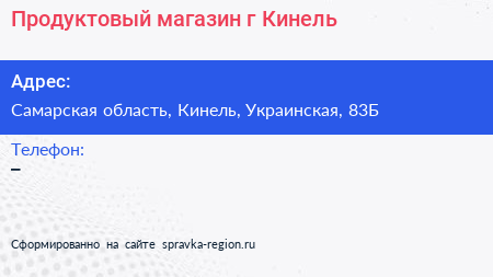 Продуктовый магазин, г. Кинель по адресу Самарская область, Кинель, Украинская, 83Б в дальнейшем Организация, размещена в следующих категориях: