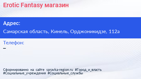 Erotic Fantasy, магазин по адресу Самарская область, Кинель, Орджоникидзе, 112а в дальнейшем Организация, размещена в следующих категориях: