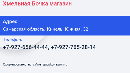 Хмельная Бочка, магазин по адресу Самарская область, Кинель, Южная, 32 в дальнейшем Организация, размещена в следующих категориях:
