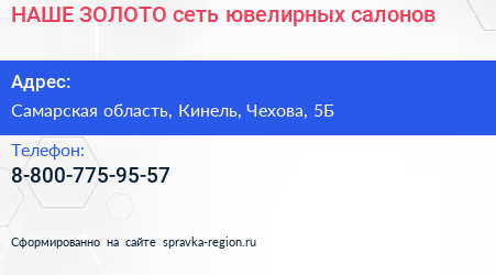 НАШЕ ЗОЛОТО, сеть ювелирных салонов по адресу Самарская область, Кинель, Чехова, 5Б в дальнейшем Организация, размещена в следующих категориях: