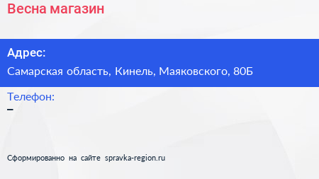 Весна, магазин по адресу Самарская область, Кинель, Маяковского, 80Б в дальнейшем Организация, размещена в следующих категориях: