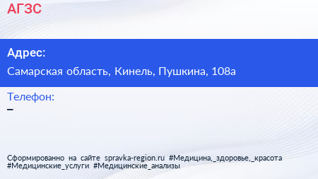 АГЗС по адресу Самарская область, Кинель, Пушкина, 108а в дальнейшем Организация, размещена в следующих категориях: