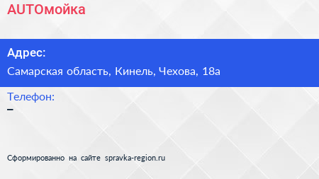 AUTOмойка по адресу Самарская область, Кинель, Чехова, 18а в дальнейшем Организация, размещена в следующих категориях: