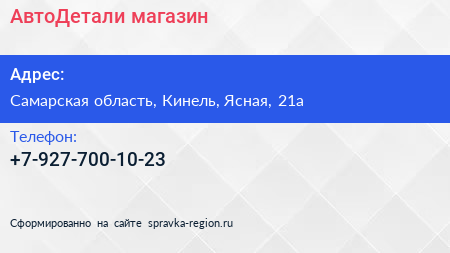 АвтоДетали, магазин по адресу Самарская область, Кинель, Ясная, 21а в дальнейшем Организация, размещена в следующих категориях: