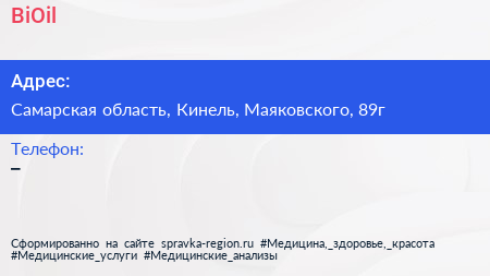 BiOil по адресу Самарская область, Кинель, Маяковского, 89г в дальнейшем Организация, размещена в следующих категориях: