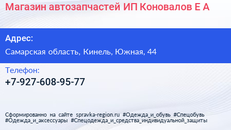 Магазин автозапчастей, ИП Коновалов Е.А. по адресу Самарская область, Кинель, Южная, 44 в дальнейшем Организация, размещена в следующих категориях: