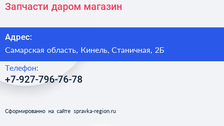 Запчасти даром, магазин по адресу Самарская область, Кинель, Станичная, 2Б в дальнейшем Организация, размещена в следующих категориях: