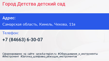 Город Детства, детский сад по адресу Самарская область, Кинель, Чехова, 11в в дальнейшем Организация, размещена в следующих категориях: