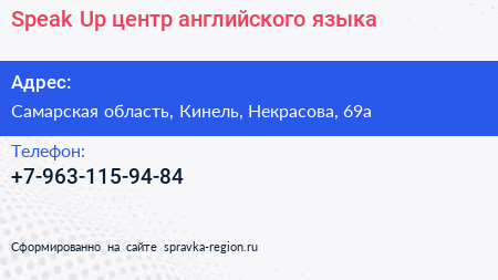 Speak Up, центр английского языка по адресу Самарская область, Кинель, Некрасова, 69а в дальнейшем Организация, размещена в следующих категориях: