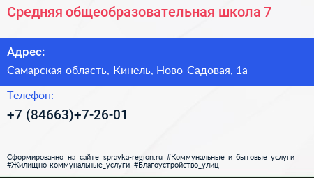 Средняя общеобразовательная школа №7 по адресу Самарская область, Кинель, Ново-Садовая, 1а в дальнейшем Организация, размещена в следующих категориях: