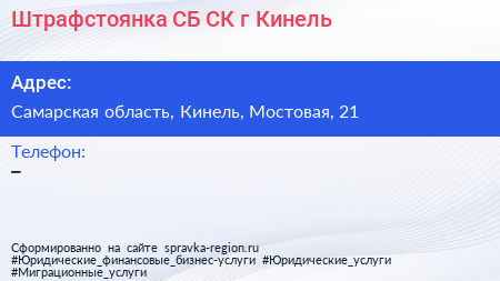 Штрафстоянка СБ СК, г. Кинель по адресу Самарская область, Кинель, Мостовая, 21 в дальнейшем Организация, размещена в следующих категориях: