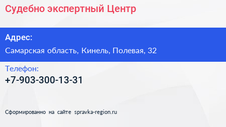 Судебно-экспертный Центр по адресу Самарская область, Кинель, Полевая, 32 в дальнейшем Организация, размещена в следующих категориях: