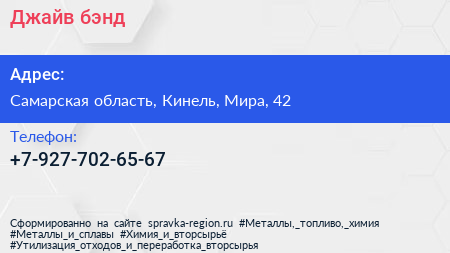 Джайв-бэнд по адресу Самарская область, Кинель, Мира, 42 в дальнейшем Организация, размещена в следующих категориях: