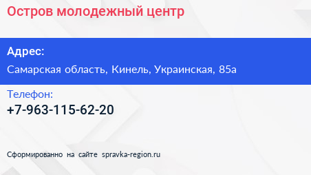 Остров, молодежный центр по адресу Самарская область, Кинель, Украинская, 85а в дальнейшем Организация, размещена в следующих категориях:
