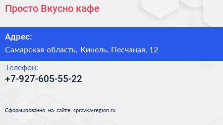Просто Вкусно, кафе по адресу Самарская область, Кинель, Песчаная, 12 в дальнейшем Организация, размещена в следующих категориях:
