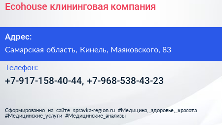 Ecohouse, клининговая компания по адресу Самарская область, Кинель, Маяковского, 83 в дальнейшем Организация, размещена в следующих категориях: