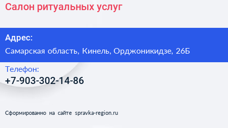 Салон ритуальных услуг по адресу Самарская область, Кинель, Орджоникидзе, 26Б в дальнейшем Организация, размещена в следующих категориях: