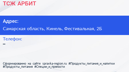 ТСЖ АРБИТ по адресу Самарская область, Кинель, Фестивальная, 2Б в дальнейшем Организация, размещена в следующих категориях: