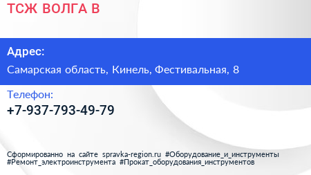 ТСЖ ВОЛГА-В по адресу Самарская область, Кинель, Фестивальная, 8 в дальнейшем Организация, размещена в следующих категориях: