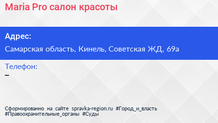 Maria.Pro, салон красоты по адресу Самарская область, Кинель, Советская ЖД, 69а в дальнейшем Организация, размещена в следующих категориях: