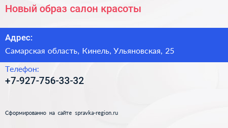Новый образ, салон красоты по адресу Самарская область, Кинель, Ульяновская, 25 в дальнейшем Организация, размещена в следующих категориях:
