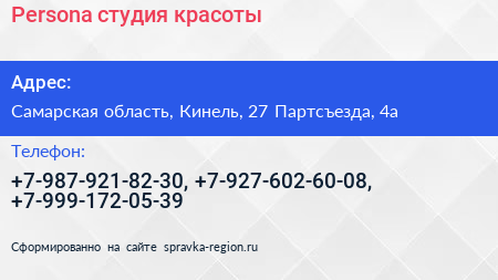 Persona, студия красоты по адресу Самарская область, Кинель, 27 Партсъезда, 4а в дальнейшем Организация, размещена в следующих категориях: