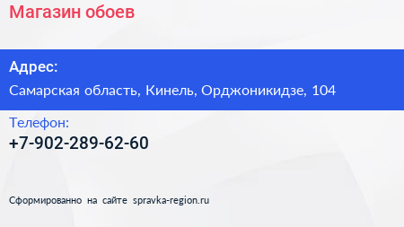 Магазин обоев по адресу Самарская область, Кинель, Орджоникидзе, 104 в дальнейшем Организация, размещена в следующих категориях: