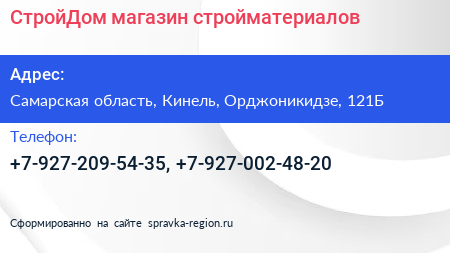 СтройДом, магазин стройматериалов по адресу Самарская область, Кинель, Орджоникидзе, 121Б в дальнейшем Организация, размещена в следующих категориях: