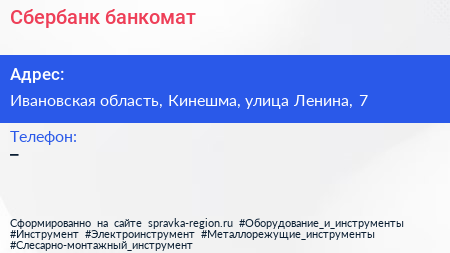 Сбербанк, банкомат по адресу Ивановская область, Кинешма, улица Ленина, 7 в дальнейшем Организация, размещена в следующих категориях: