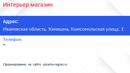 Интерьер, магазин по адресу Ивановская область, Кинешма, Комсомольская улица, 1 в дальнейшем Организация, размещена в следующих категориях: