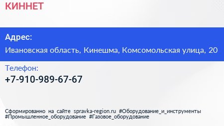 КИННЕТ по адресу Ивановская область, Кинешма, Комсомольская улица, 20 в дальнейшем Организация, размещена в следующих категориях: