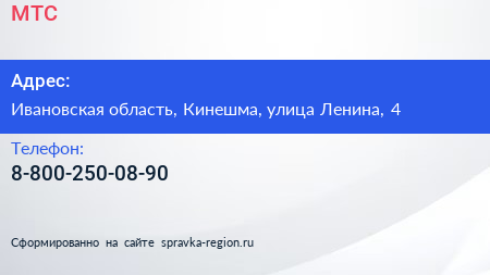 МТС по адресу Ивановская область, Кинешма, улица Ленина, 4 в дальнейшем Организация, размещена в следующих категориях: