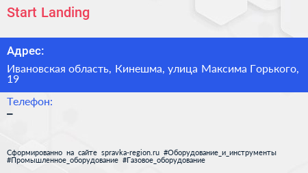 Start Landing по адресу Ивановская область, Кинешма, улица Максима Горького, 19 в дальнейшем Организация, размещена в следующих категориях: