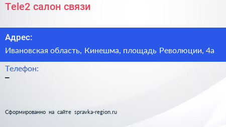 Tele2, салон связи по адресу Ивановская область, Кинешма, площадь Революции, 4а в дальнейшем Организация, размещена в следующих категориях: