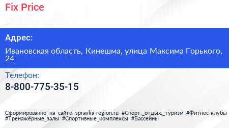 Fix Price по адресу Ивановская область, Кинешма, улица Максима Горького, 24 в дальнейшем Организация, размещена в следующих категориях: