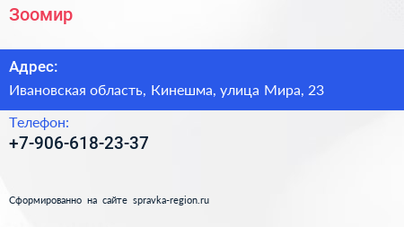 Зоомир по адресу Ивановская область, Кинешма, улица Мира, 23 в дальнейшем Организация, размещена в следующих категориях: