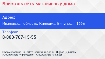 Бристоль, сеть магазинов у дома по адресу Ивановская область, Кинешма, Вичугская, 166Б в дальнейшем Организация, размещена в следующих категориях: