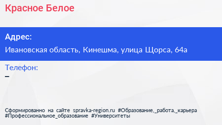 Красное & Белое по адресу Ивановская область, Кинешма, улица Щорса, 64а в дальнейшем Организация, размещена в следующих категориях: