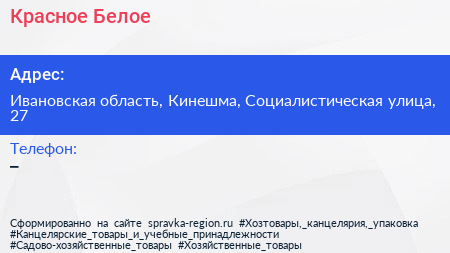Красное & Белое по адресу Ивановская область, Кинешма, Социалистическая улица, 27 в дальнейшем Организация, размещена в следующих категориях: